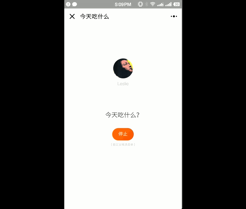 快,按「停止」,它就随机帮你选择了今天要吃的食物。